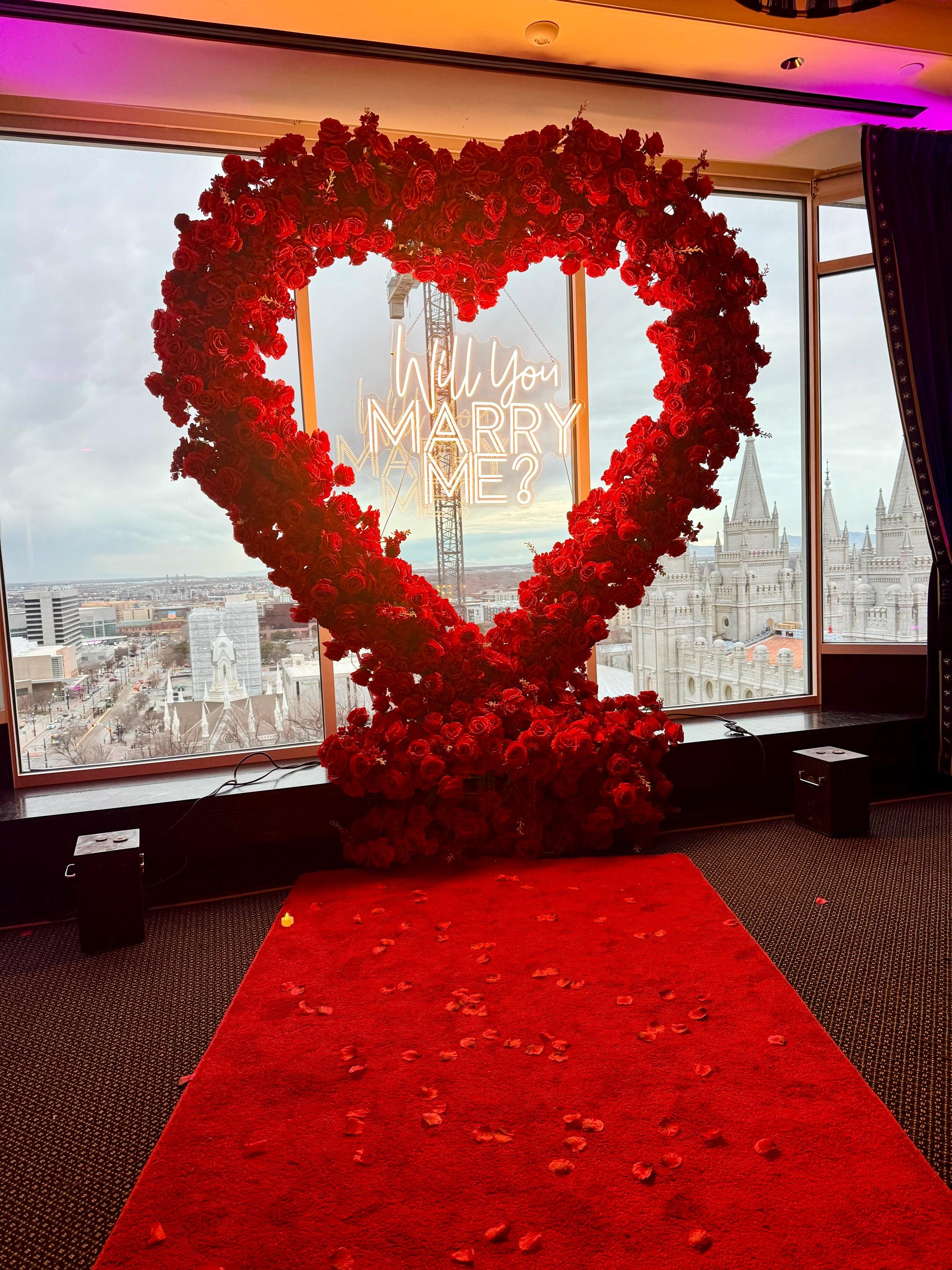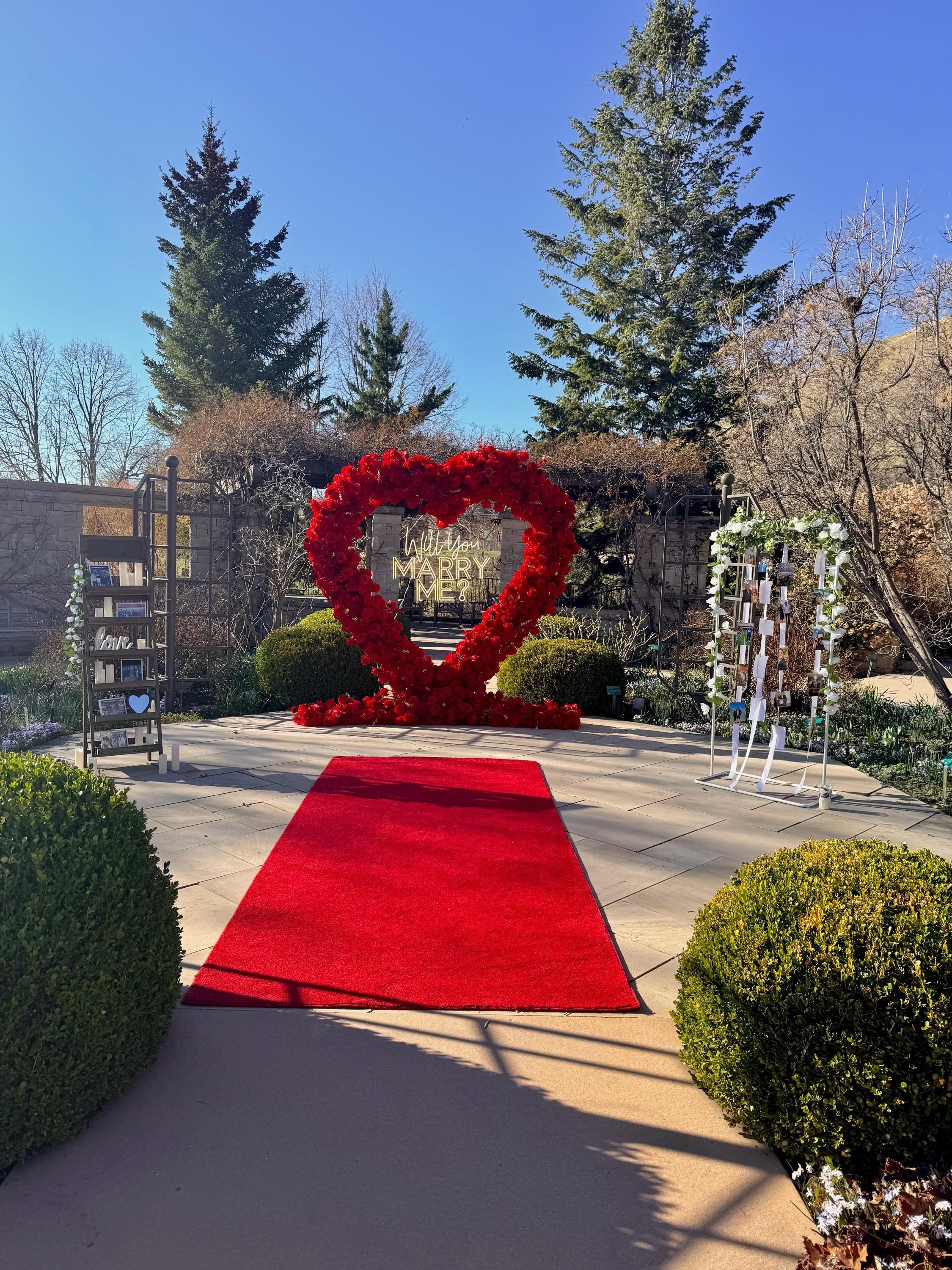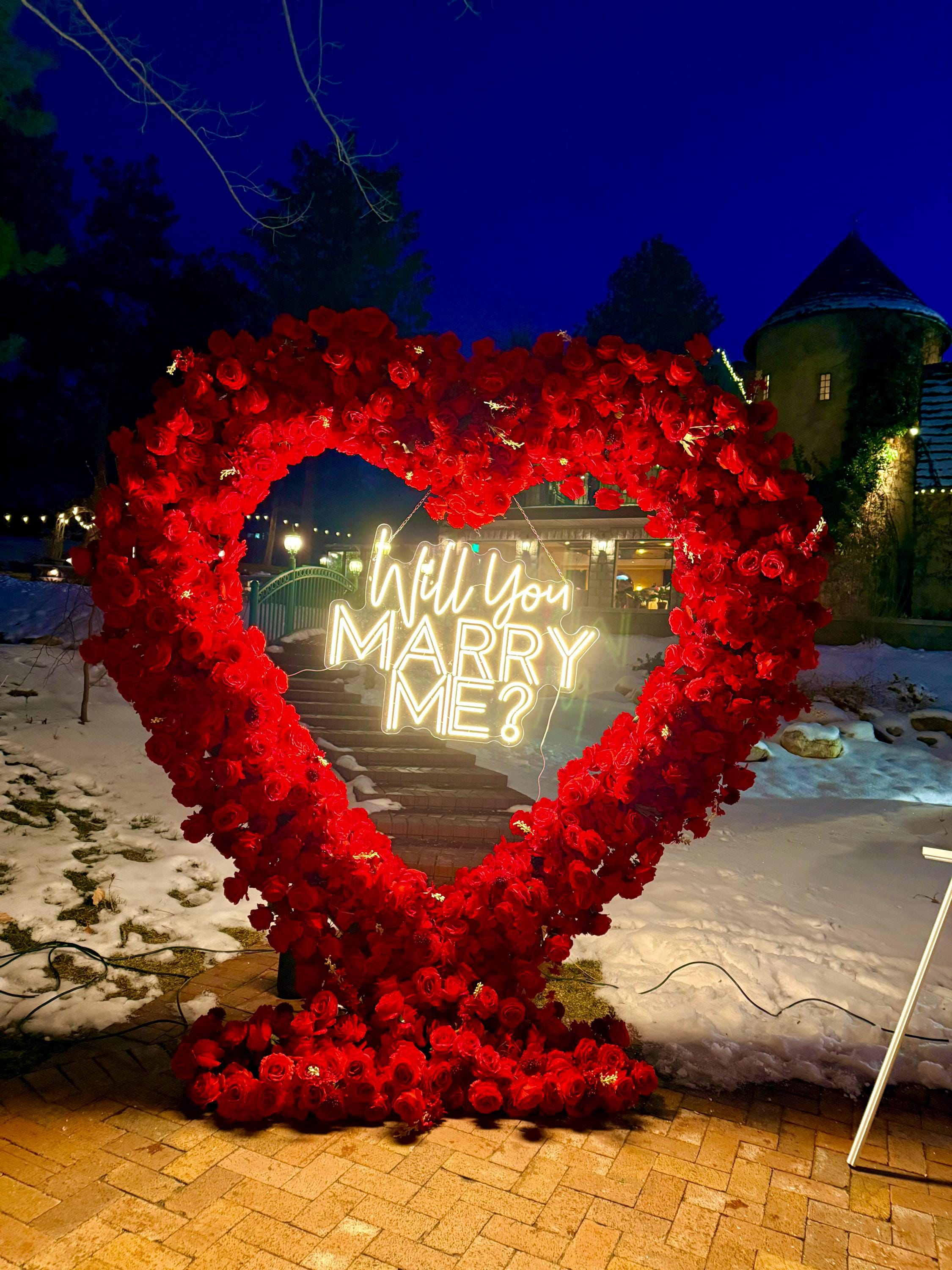 Red Silk Flower Arch: Heart-Shaped Wedding Backdrop, 6.5ft/8ft(2m/2.4m)
