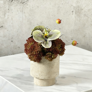 Our studio houses an extensive selection of high-quality faux flowers in diverse hues, textures, and varieties, paired with a wide array of vases (from minimalist ceramics to elegant glassware) that perfectly complement any arrangement style.