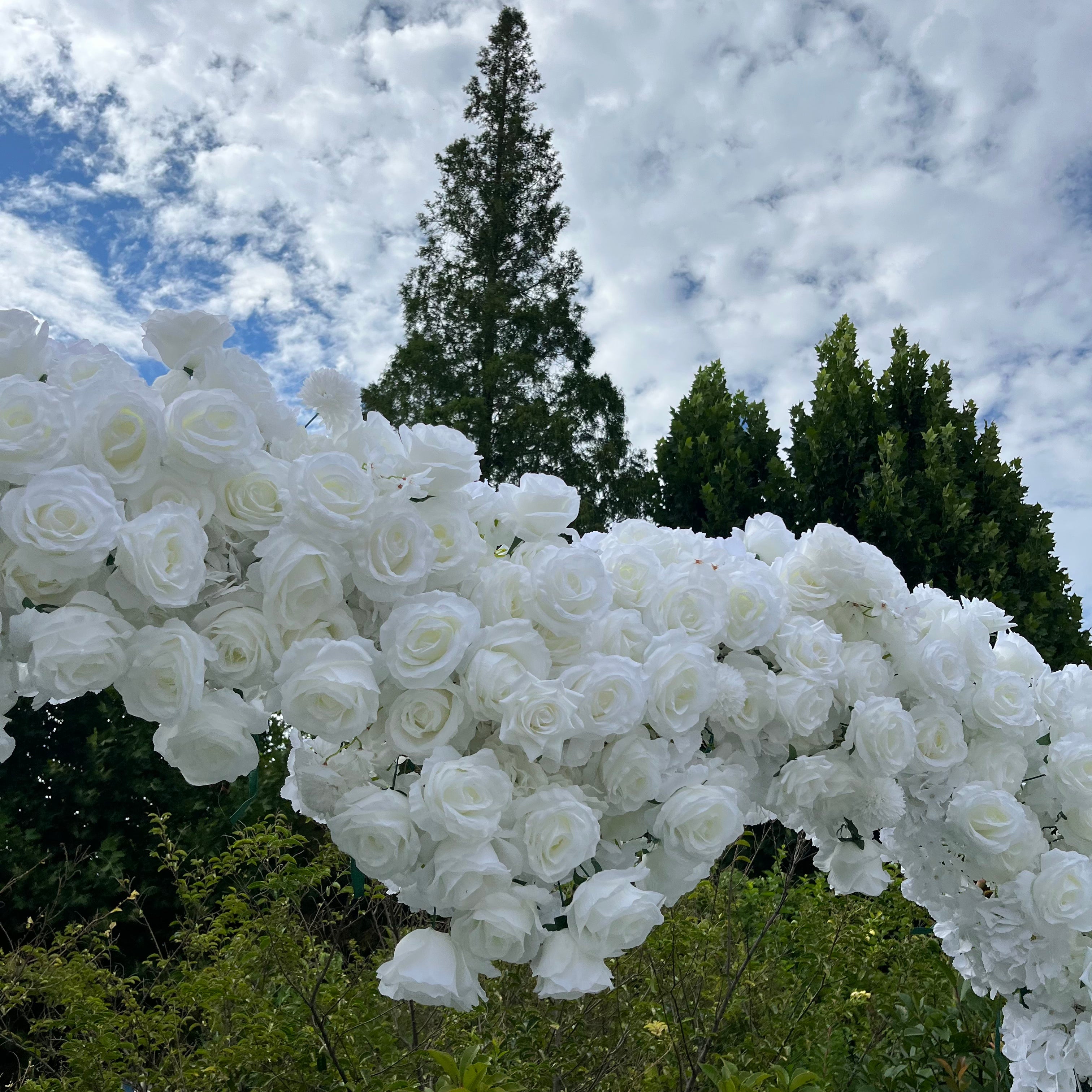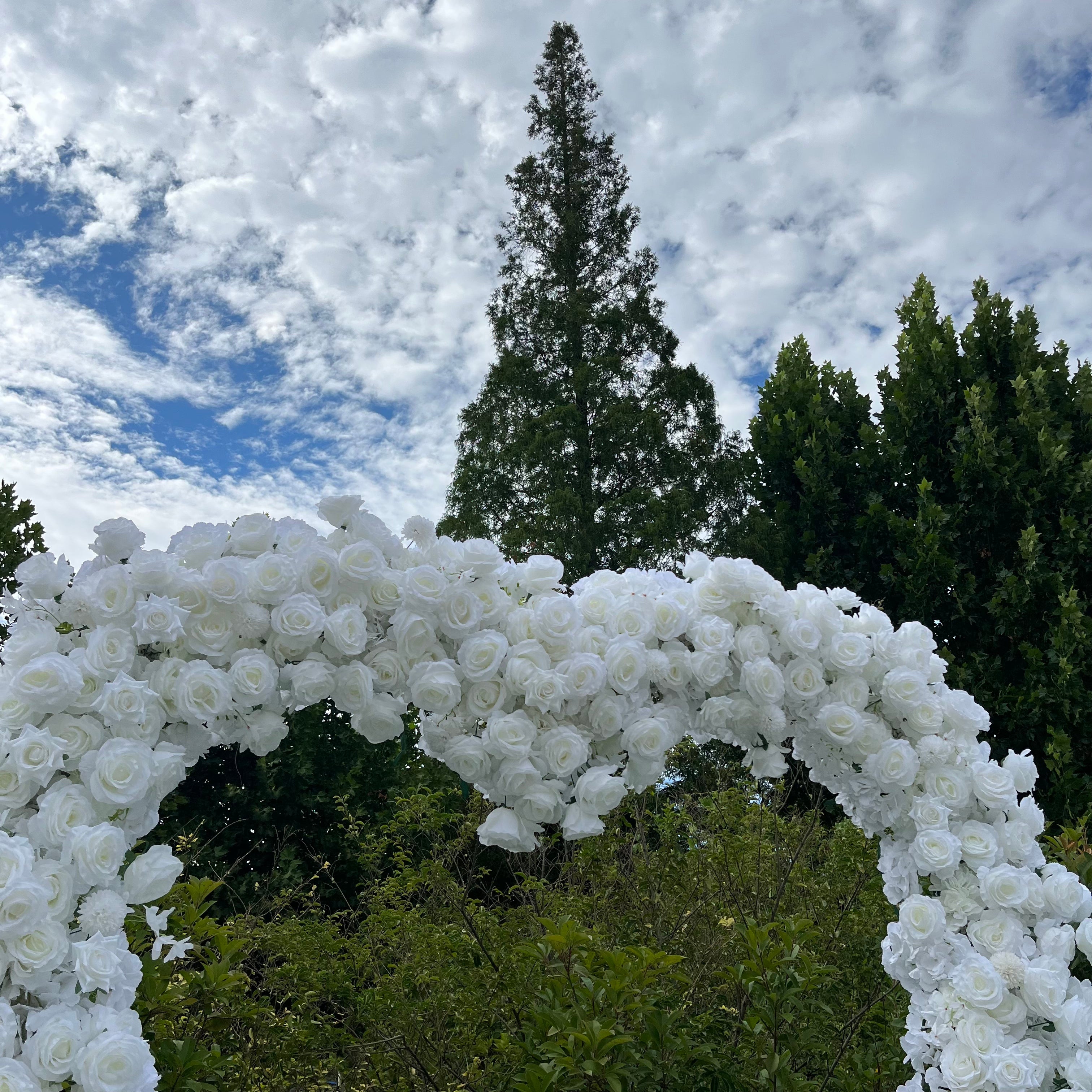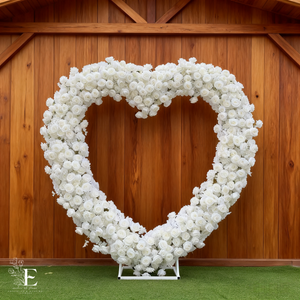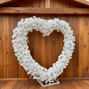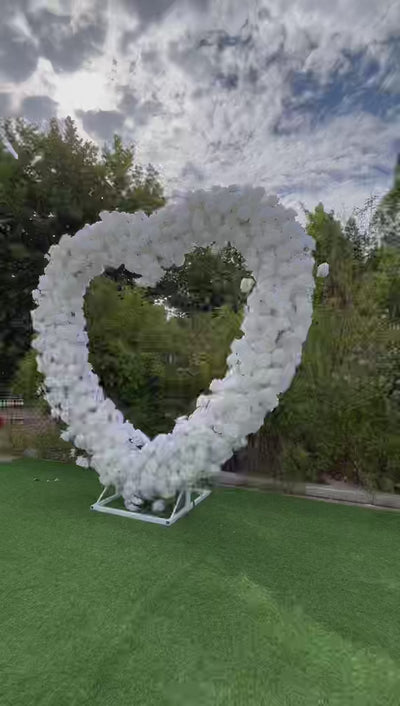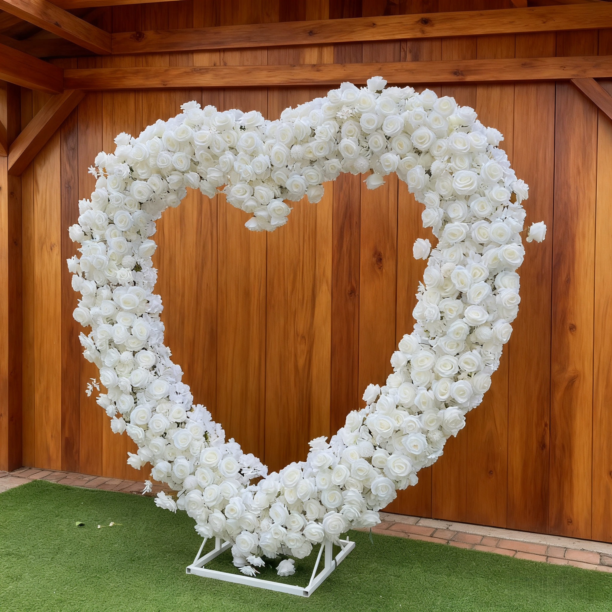 White Silk Flower Heart Arch: Wedding Ceremony Backdrop with Stand