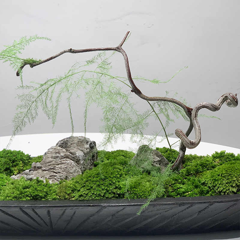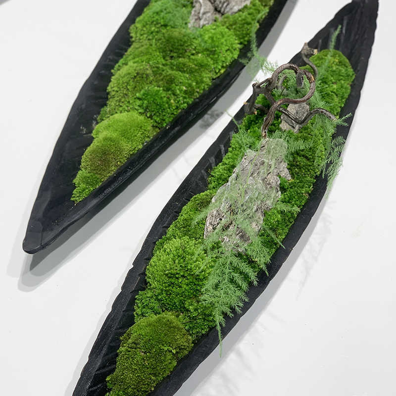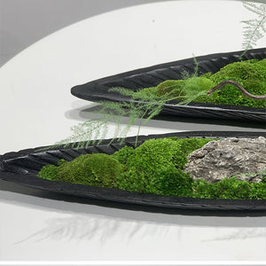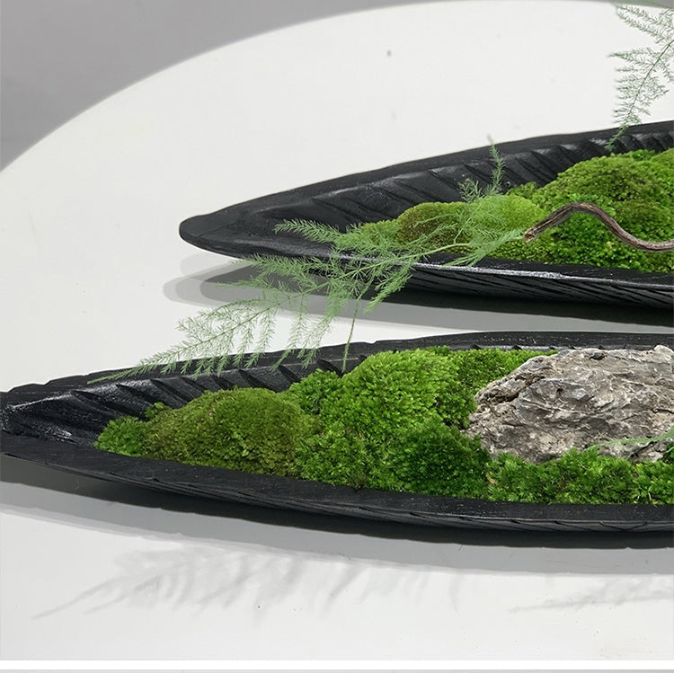 Moss & Wood Boat Bonsai Ornament: Handmade Wabi-Sabi Decor (31.5'')