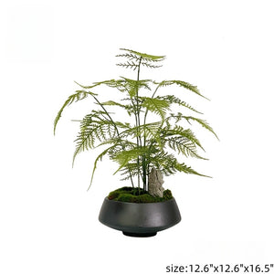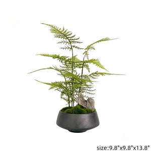 Preserved Moss Bonsai: Wabi-Sabi Stone Art Decor (16.5'')