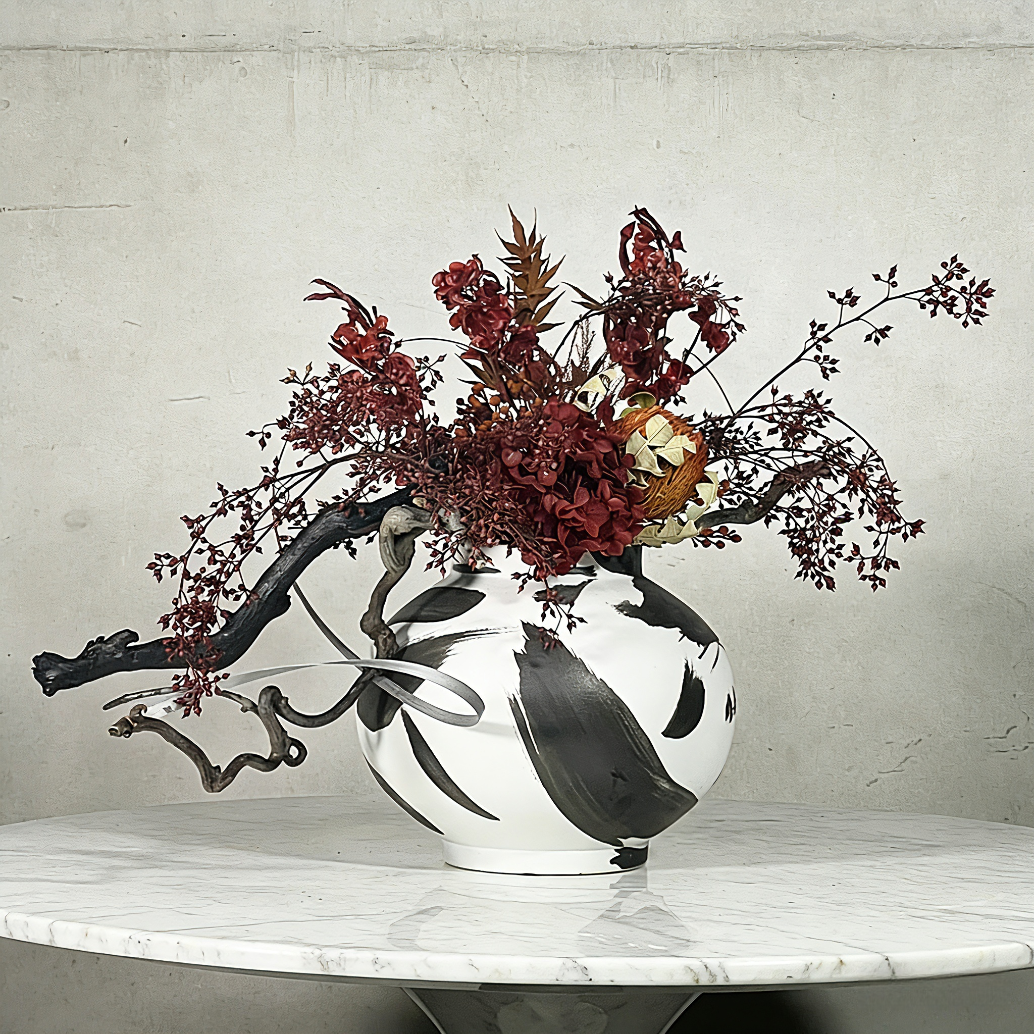 Our studio houses an extensive selection of high-quality faux flowers in diverse hues, textures, and varieties, paired with a wide array of vases (from minimalist ceramics to elegant glassware) that perfectly complement any arrangement style.