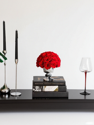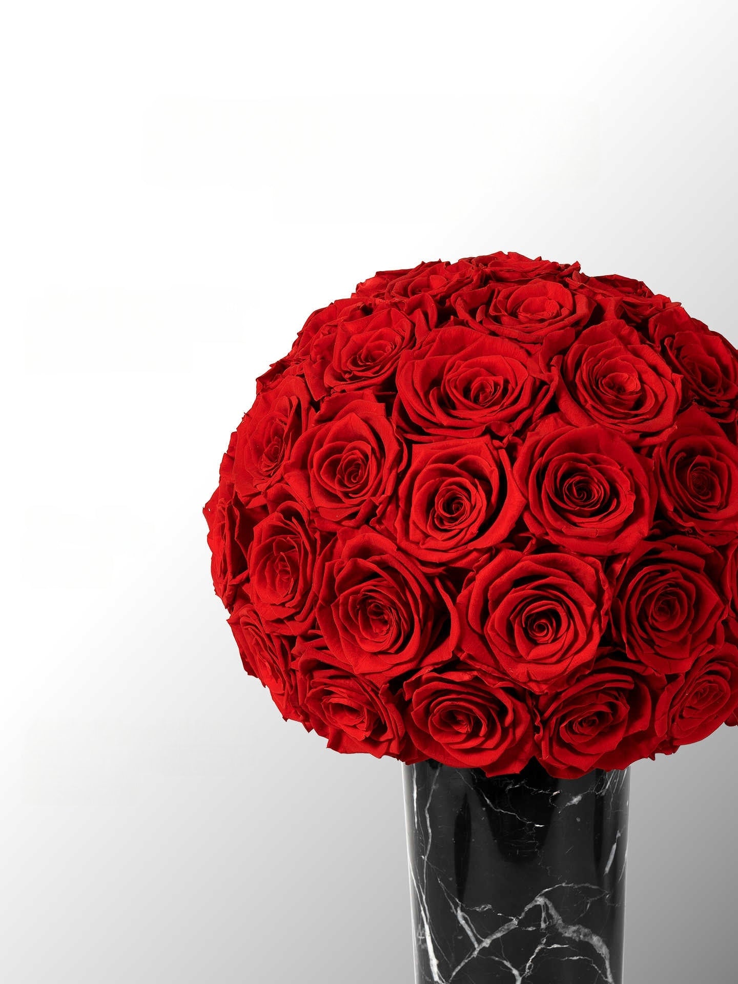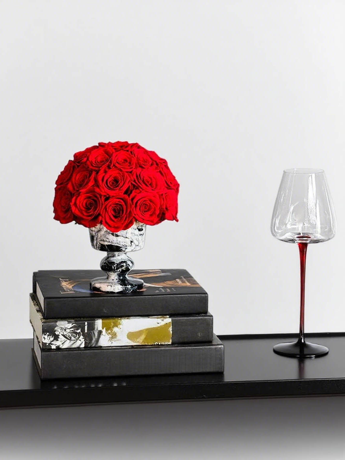 Preserved Red Rose in Marble Vase: Handmade Floral Decor