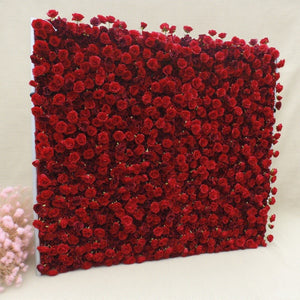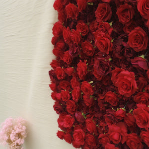 3D Red Rose Flower Wall Backdrop: 8x8ft Silk Wedding Decor