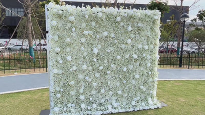 5D White Artificial Plant Silk Flower Wall Backdrop: Wedding Event Decoration (8x8ft)