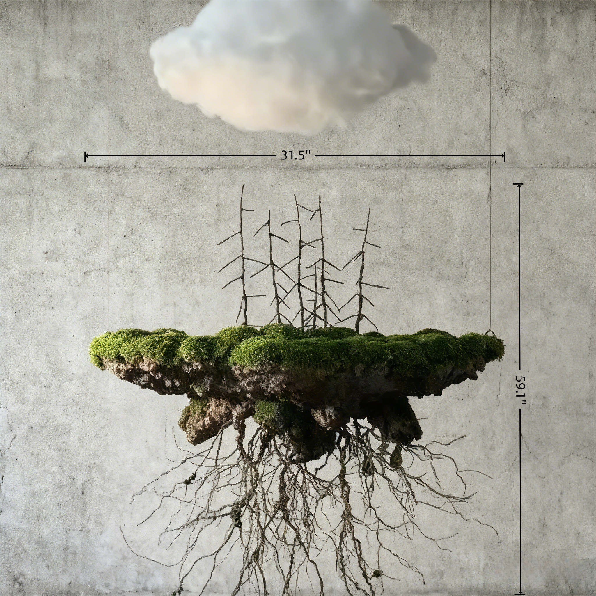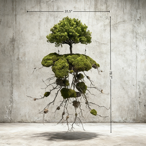 Handmade Bonsai Sky Tree Art With Floating Design: Moss & Preserved Flowers